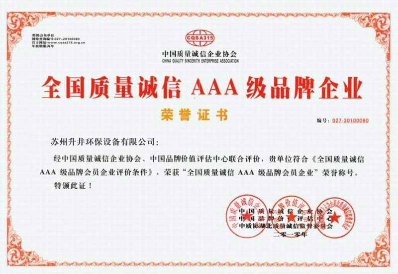 全国质量诚信AAA级品牌企